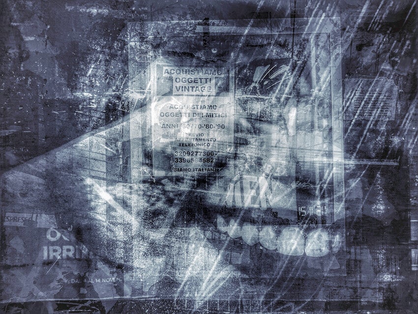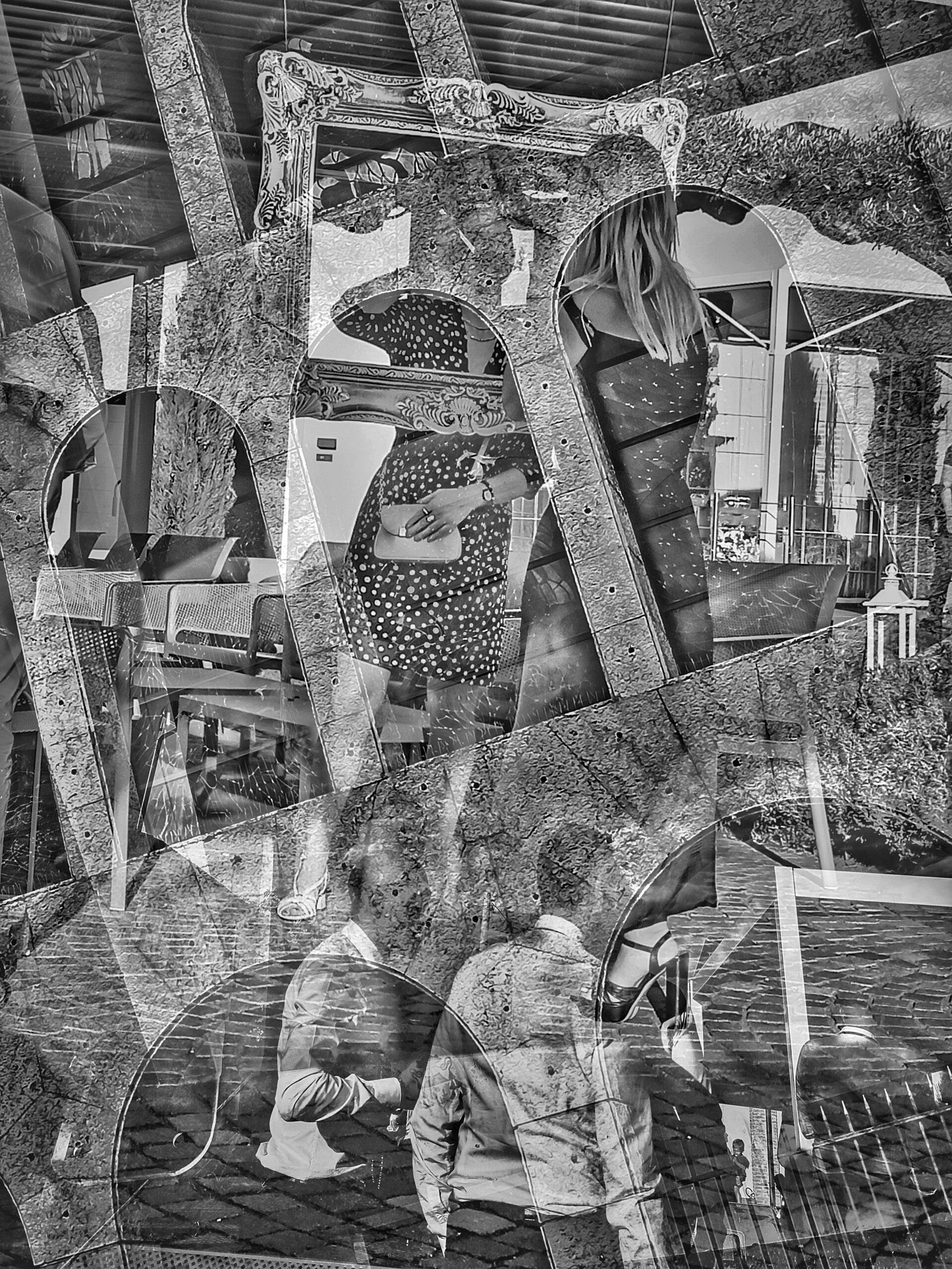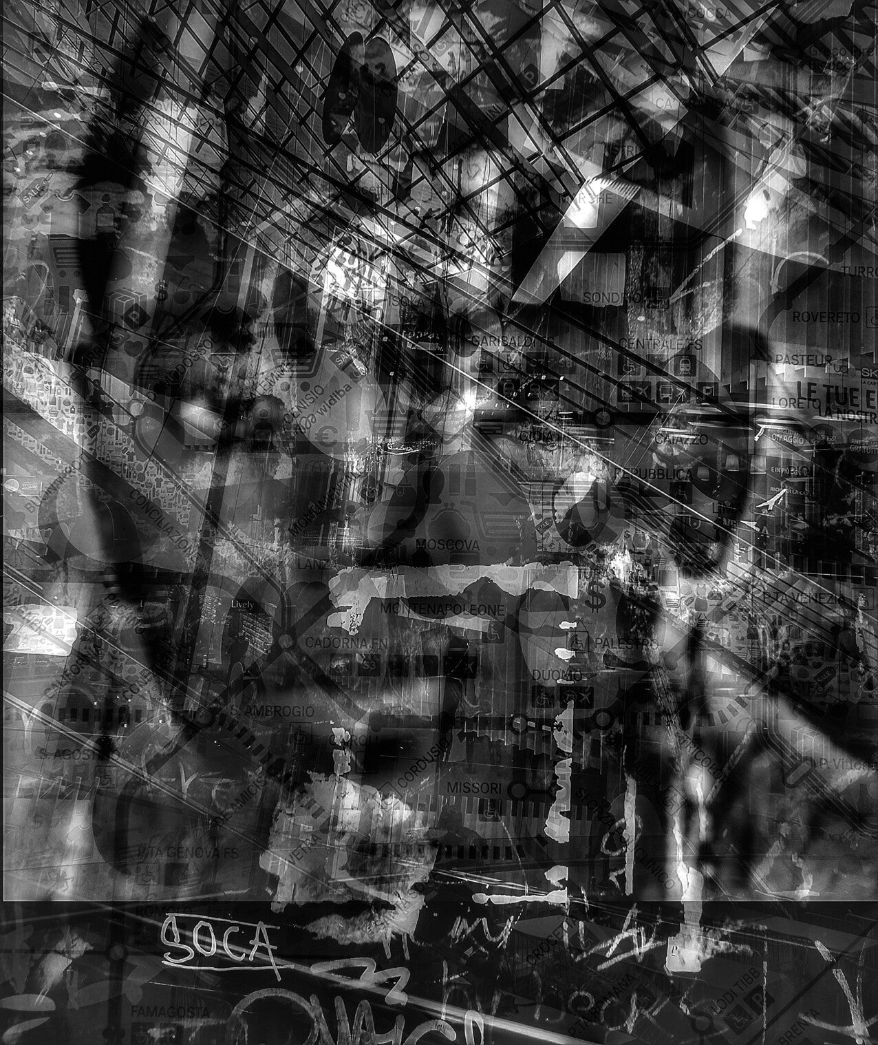 Photographs as random ideas, investigated curiosities, details that catch the photographer's eye as he wanders between concept and project. 'Tableaux' representing cities, landscapes, faces, aspects that do not exist but are present in the author's mind, reworked by the imagination with some psychedelic touches to create impressions and reflections in those who look and immerse themselves in colours and lines, in dense shadows and flashes of light, where smiles or indistinguishable figures or objects remain frozen in a fragile forever. Immaterial mental images made concrete by photographic media in various formats, some of which spread out and widen to seek distance, others which become myopic visions and draw the viewer in a progressive approach